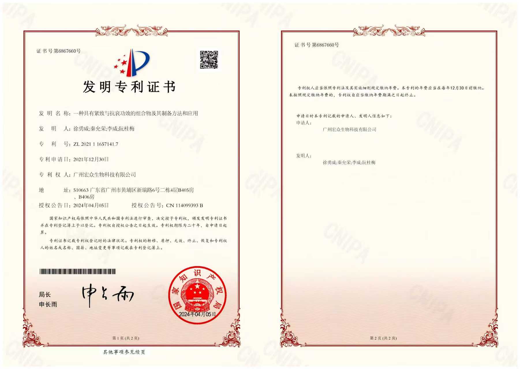 此次 ZL202111657141.7 发明专利 的授权,展示了科研团队在紧致与抗衰护肤技术领域的研究成果,也为相关技术发展提供了新的研究案例。
