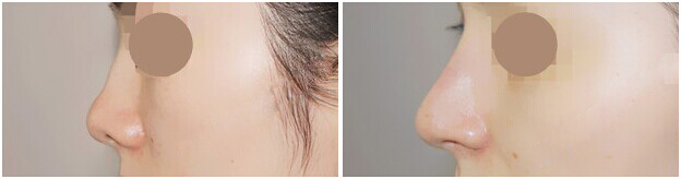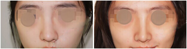 术前:该顾客为驼峰鼻,鼻尖短,鼻孔外漏,鼻翼宽大。
