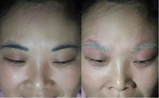 顾客的心情可以理解,因为这脱痂前后的对比也太明显了,而顾客们不懂,自然就容易引起不必要的误会,要么认为纹绣师技术不行,要么认为给她用的色料差。