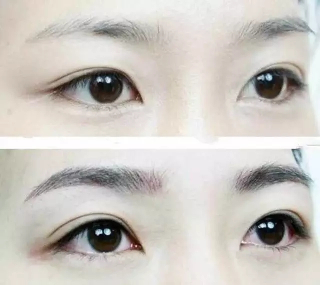 第三,眉毛和眼睛距离太远。西方人大多数为大而平行的多层双眼皮,双眼皮位于眉毛和眼睛之间,而东方人多数是广尾形的小双或隐双,眉毛太高,不是很有立体感。