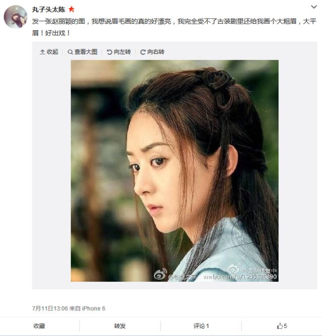 (转自新浪微博)可是最近!眼尖的朋友们都发现了!wuli颖宝瘦了!竟然瘦了!这究竟是怎么回事!在《楚乔传》新爆出来的剧照中,我们发现,赵丽颖饰演的楚乔一改平日圆脸的可爱形象!竟然脸小了这么多,到底是怎么了?!最近也没有说赵丽颖为了拍戏而减肥阿?这脸咋瞬间就小了?!细心的朋友可能发现了,原来是wuli颖宝换了一个眉毛!从之前的韩式一字眉变成了细一点的自然眉!这瘦脸效果简直不要太好!