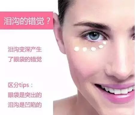 泪沟是内眼角到下眼睑,鼻子与苹果肌间的一条凹沟,有些人的还延伸到脸颊。泪沟的出现,使下脸组织带来凸显、臃肿的状态,很容易被认为是眼袋,但是它就是泪沟,不要被泪沟变深的错觉迷惑。