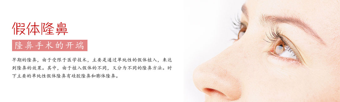 早期的隆鼻,由于受限于医学技术,主要是通过单纯性的假体植入,来达到隆鼻的效果。其中,由于植入假体的不同,又分为不同的隆鼻方法。时下主要的单纯性假体隆鼻有硅胶隆鼻和膨体隆鼻。